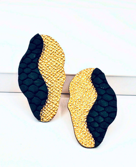 Orecchini FOGLIA - Oro Martellato/Nero Rettile Mat