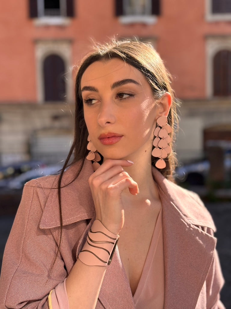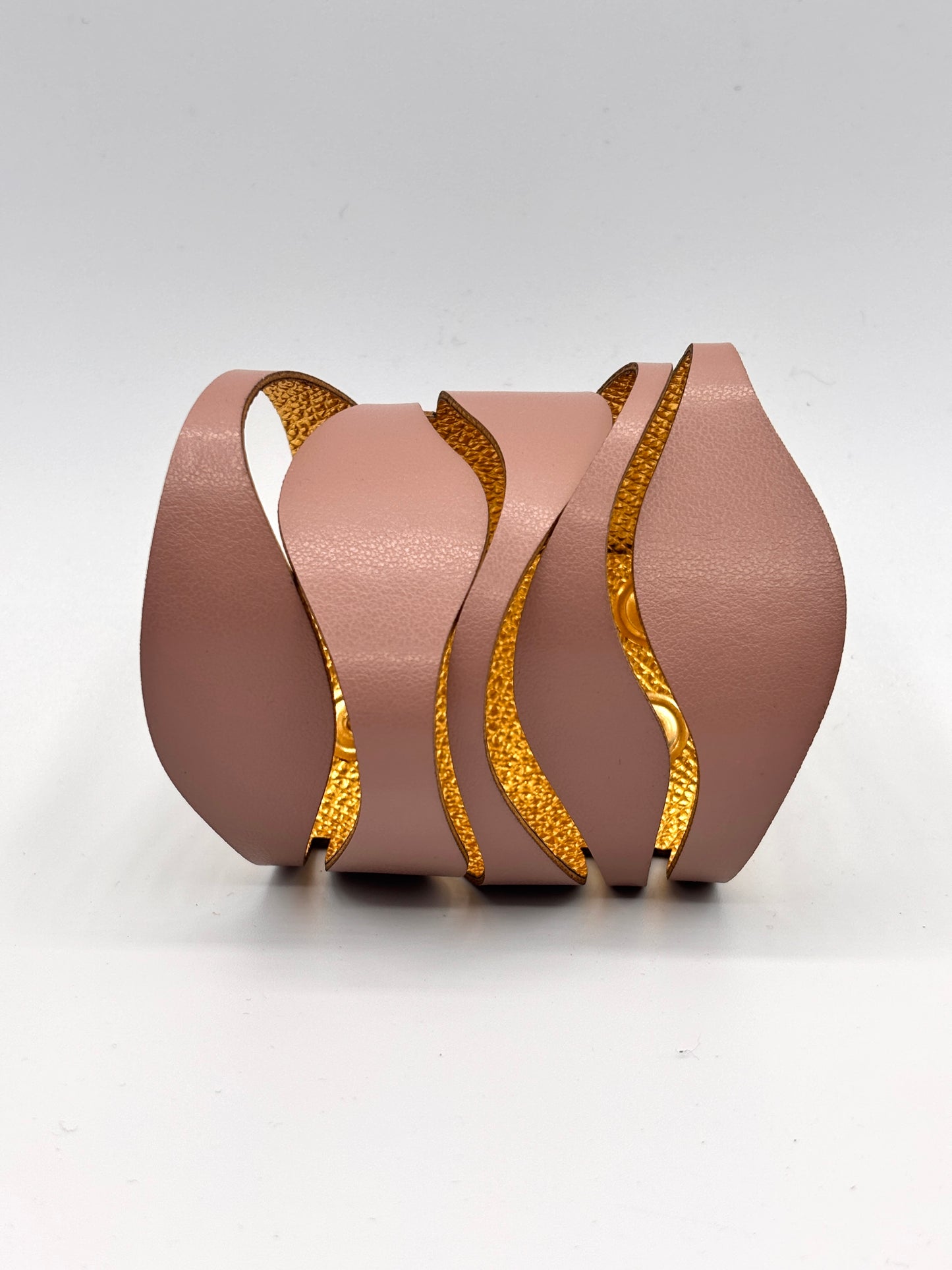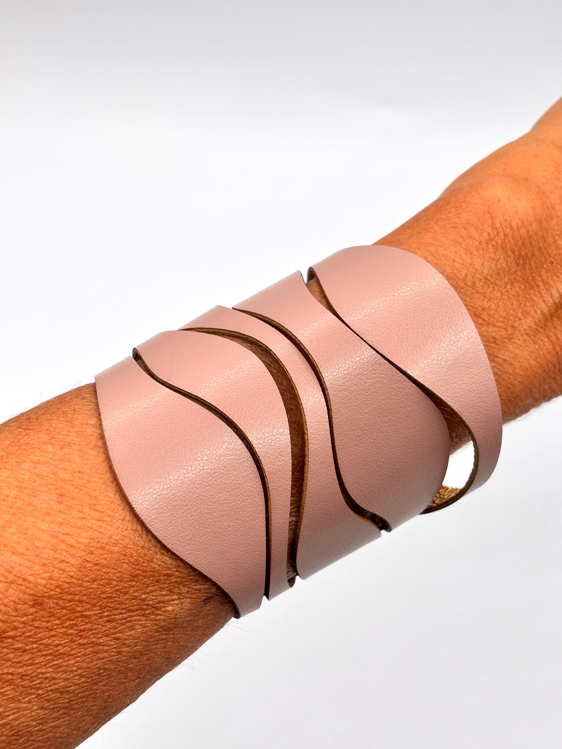 Italian eco-leather bracelet with perforated weaving with soft and enveloping lines. Equipped with double adjustable closure for optimal comfort.
