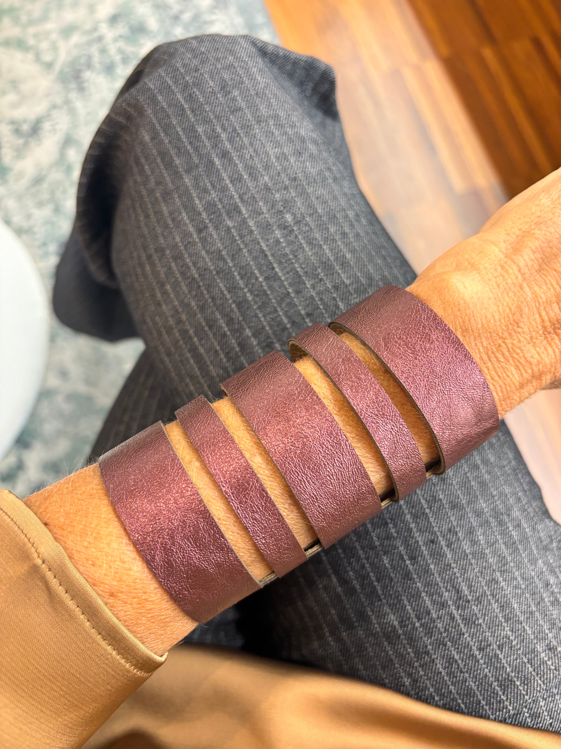 High bracelet with Italian eco-leather ribbons with a modern and refined design. Equipped with double adjustable closure for optimal comfort