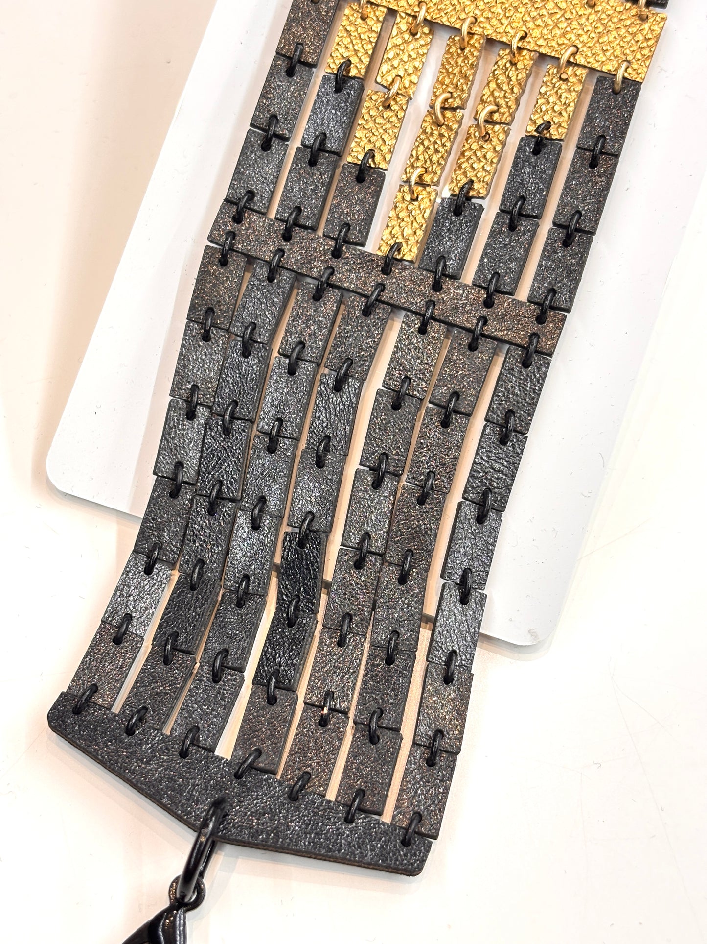 Collare in ecopelle con inserto rombo oro, chiusura regolabile.