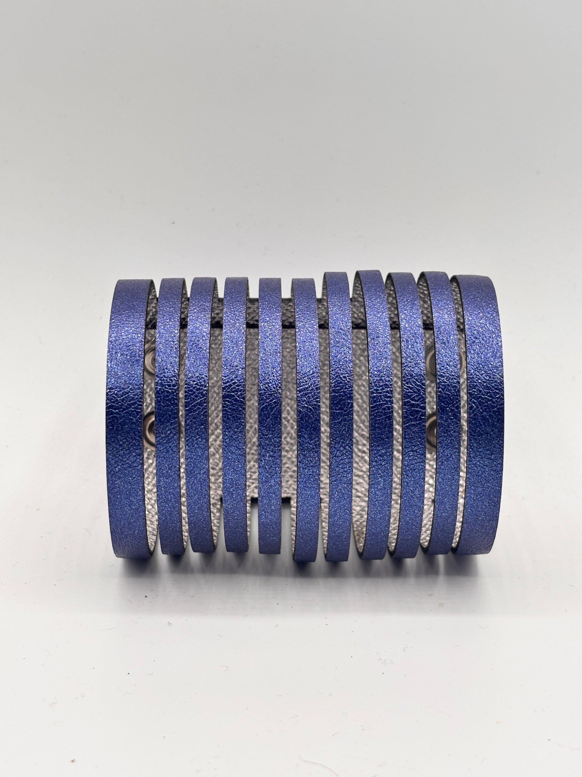 Bracciale alto con nastri in ecopelle italiana dal design moderno e raffinato. Dotato di doppia chiusura regolabile per un comfort ottimale