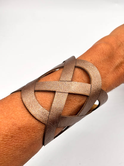 Bracciale in ecopelle italiana con linee morbide ed avvolgenti. Dotato di doppia chiusura regolabile per un comfort ottimale.