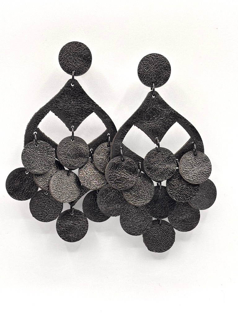 Orecchini con grappolo di leggerissime bollicine in ecopelle cangiante, che donano leggerezza e movimento.