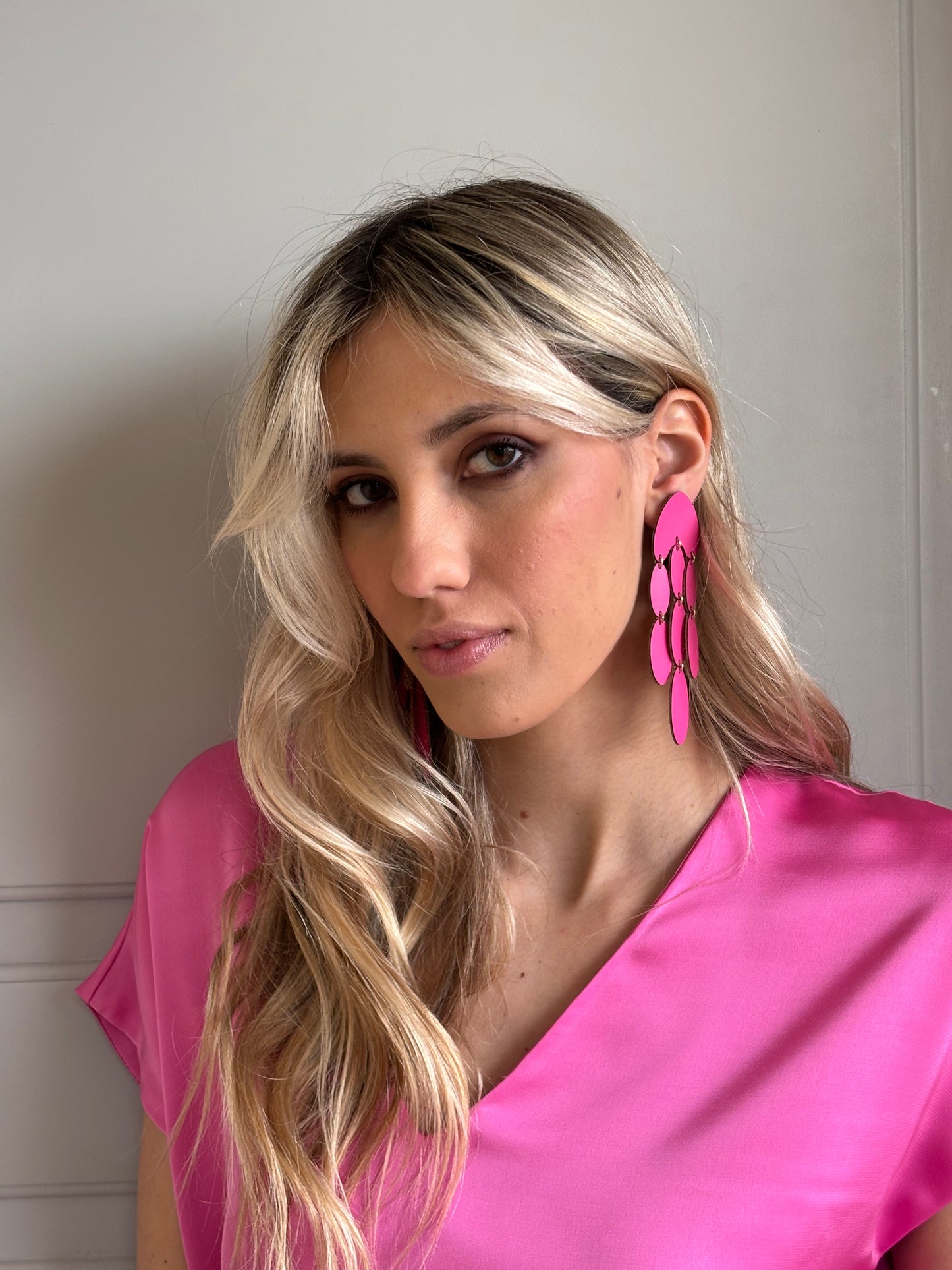 Orecchini a cascata, realizzati interamente in ecopelle, si distinguono per il loro design sofisticato e originale. Le forme morbide e pendenti creano un effetto fluido e dinamico, mentre la leggerezza del materiale garantisce il massimo comfort per tutta la giornata.