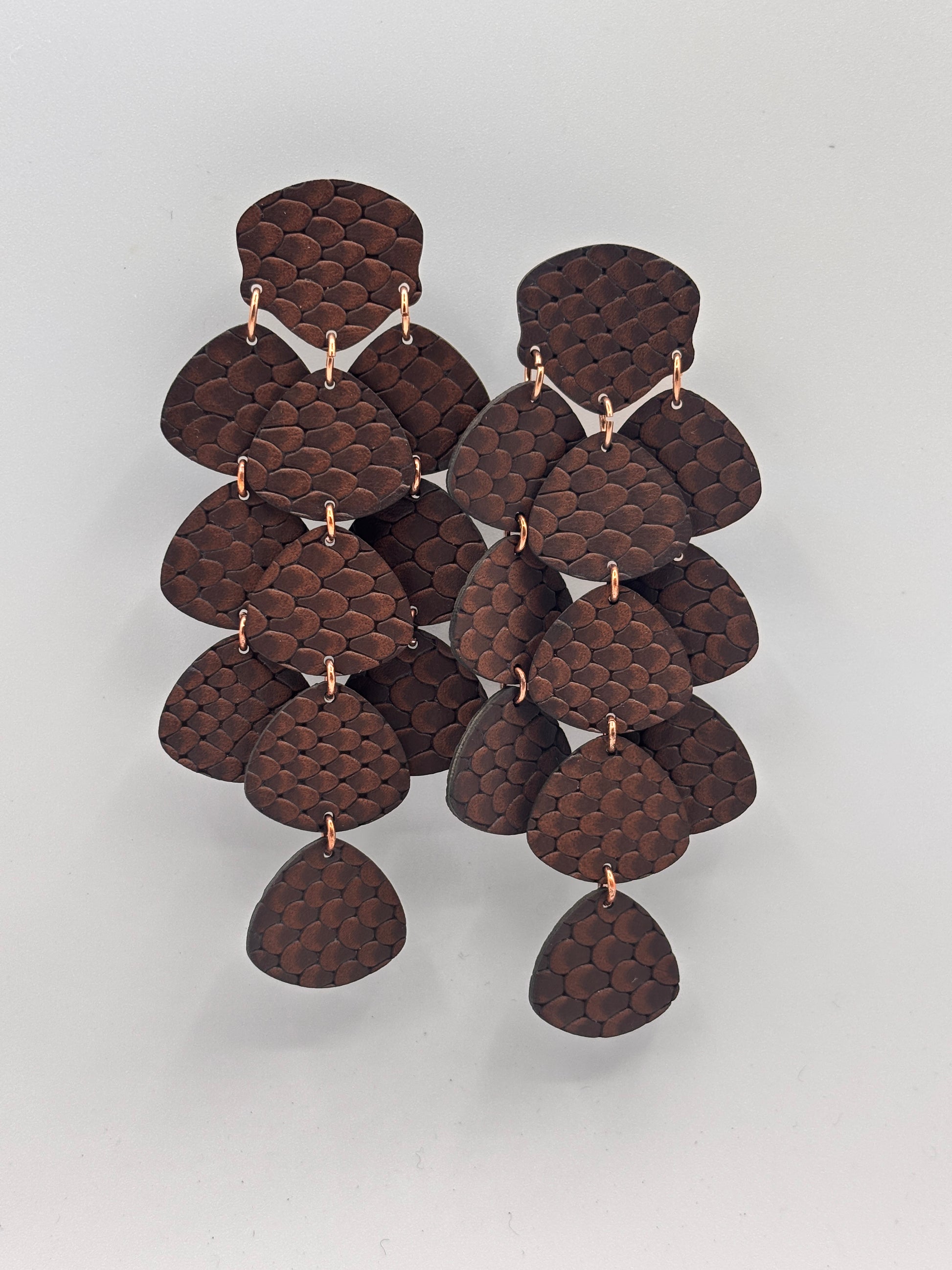 Orecchini con petali in ecopelle, leggeri e raffinati. La loro delicatezza e design sofisticato li rendono l'accessorio ideale per aggiungere un tocco di eleganza a qualsiasi look.