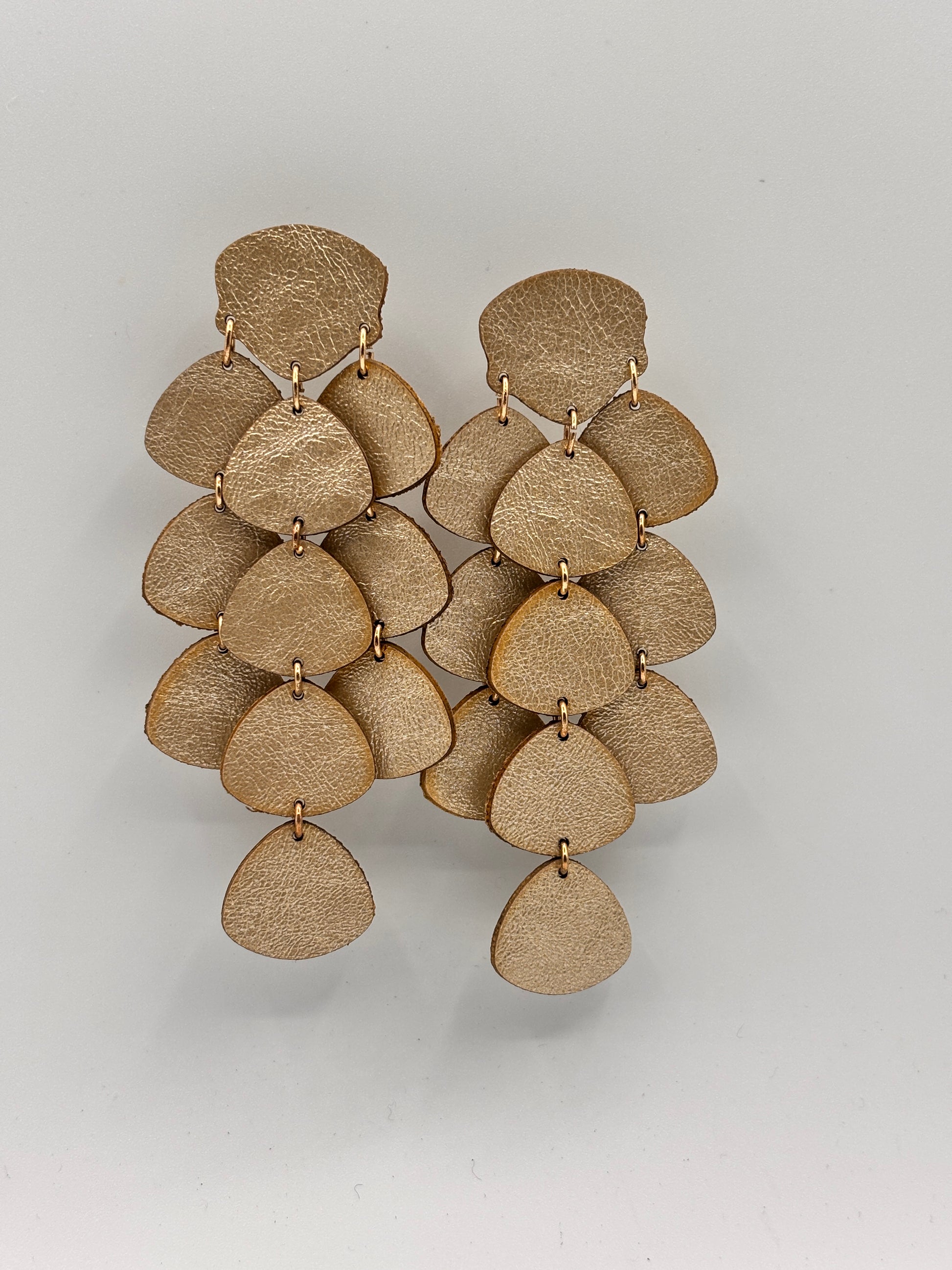 Orecchini con petali in ecopelle, leggeri e raffinati. La loro delicatezza e design sofisticato li rendono l'accessorio ideale per aggiungere un tocco di eleganza a qualsiasi look.